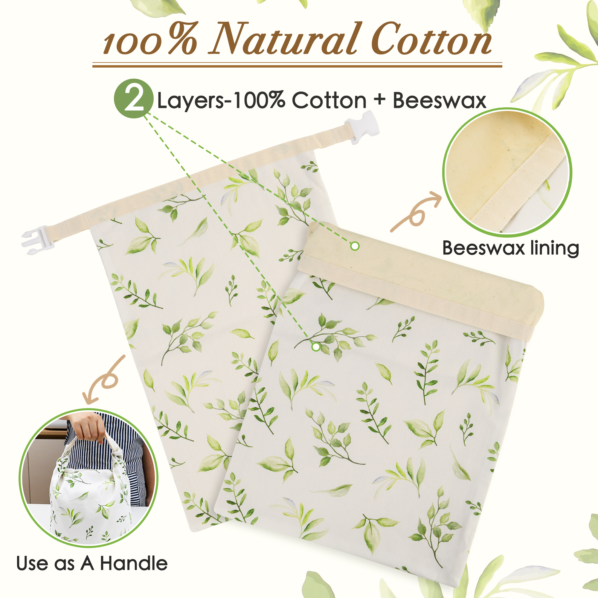 The natural cotton and Beeswax lining creates a breathable barrier that seals in moisture and helps bread stay fresh for longer and maintains crusty texture and soft interiors. Perfect for sourdough rounds, artisan loaves, and daily bread storage and as a natural storage option for your fruits and vegetables.