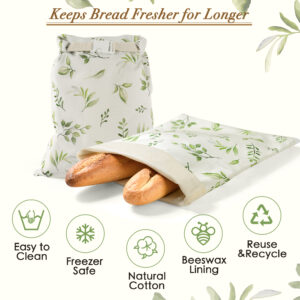 SYMURA Beeswax Bread Bag Set is made from organic cotton infused with beeswax, jojoba oil, and tree resin, these reusable bread bags and are perfect sustainable alternative to disposable plastic and paper packaging and a natural way to keep bread fresh.