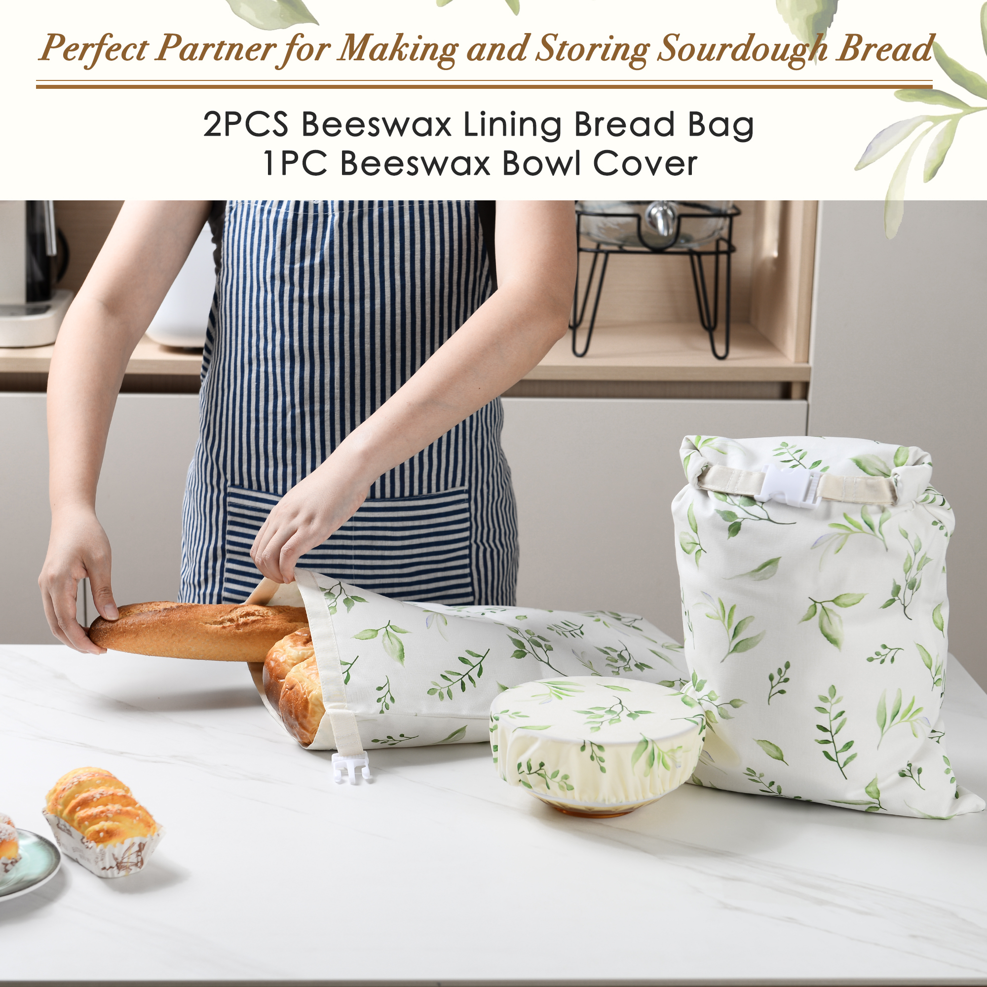 Perfect and Stylish Bakers Gift Set — This set includes 2 beeswax-lined cotton bread bags and one 20 cm beeswax bowl cover for dough proofing. It’s a perfect gift for sourdough bakers or anyone who enjoys storing homemade bread.